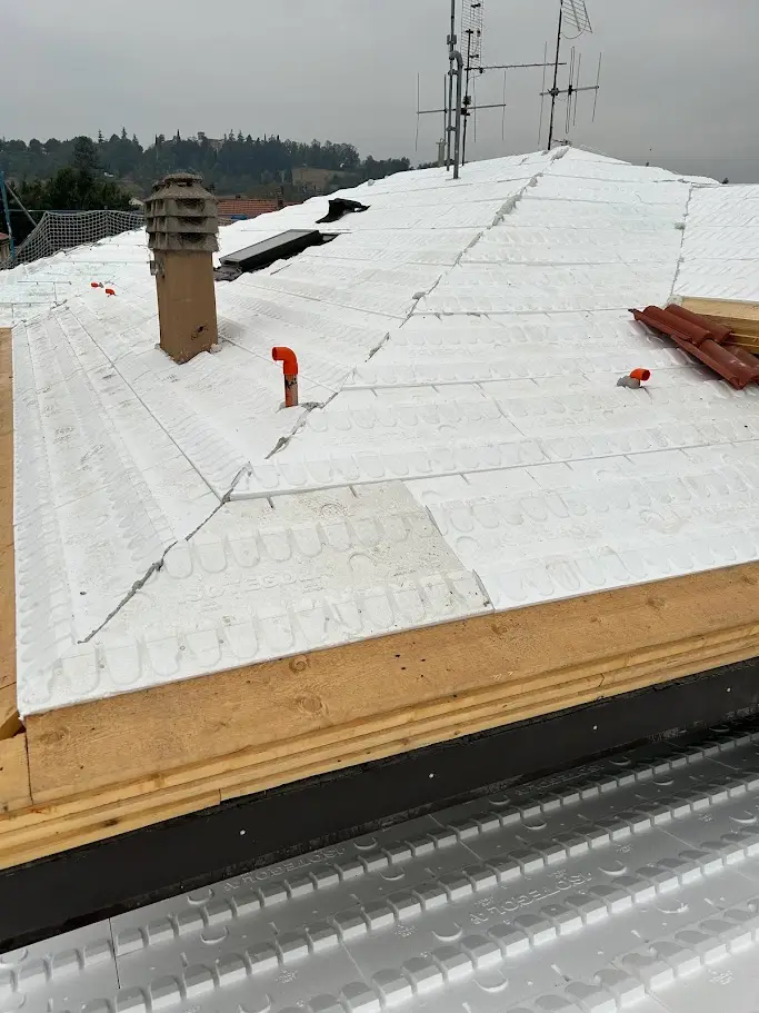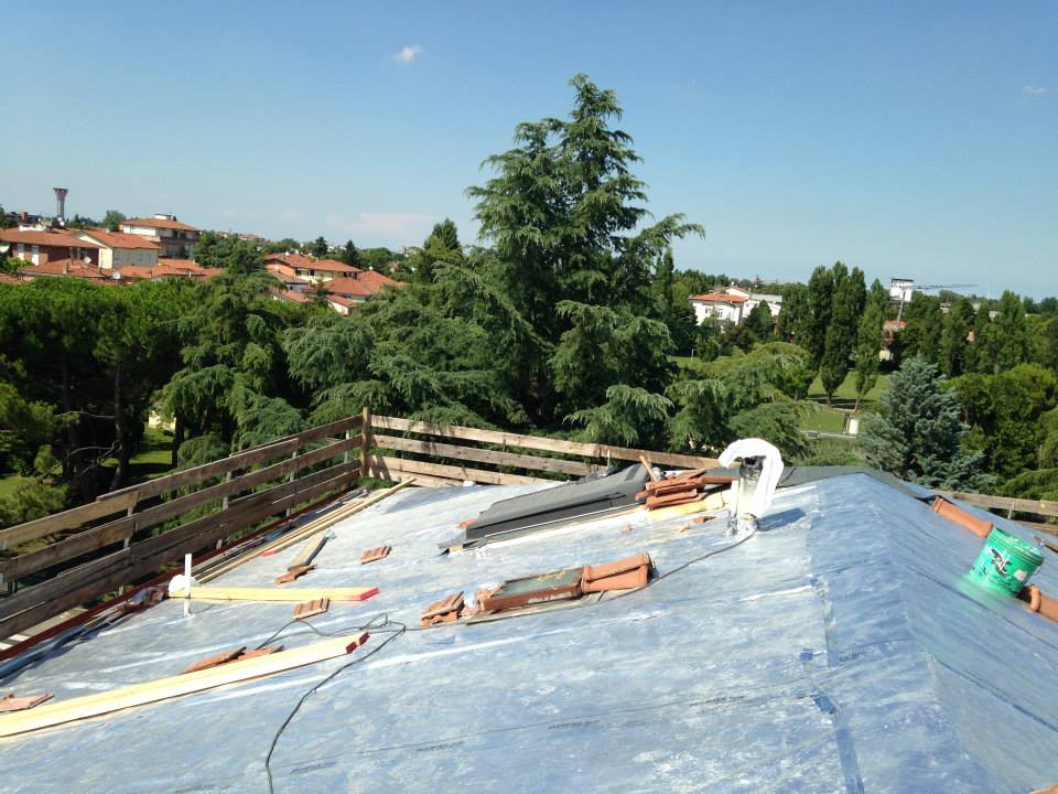In seguito alle fasi di ispezione e accertamento dello stato delle coperture, la ditta provvede allo smantellamento e all’asportazione delle vecchie strutture deteriorate, dei materiali isolanti e delle tegole, occupandosi anche del loro corretto smaltimento. Successivamente viene realizzata la nuova copertura, tramite lavori di isolamento e impermeabilizzazione e la posa di guaine ardesiate e del nuovo manto in laterizio.
